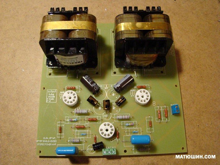 Сергеем Васильевичем была  выбрана удачная схема для реализации усилителя - без лишних наворотов, хорошо выполненная плата с грамотной разводкой  и компоновкой в комплексе  с отличными выходными трансформаторами, на выходе прекрасный звук при небольших габаритах.